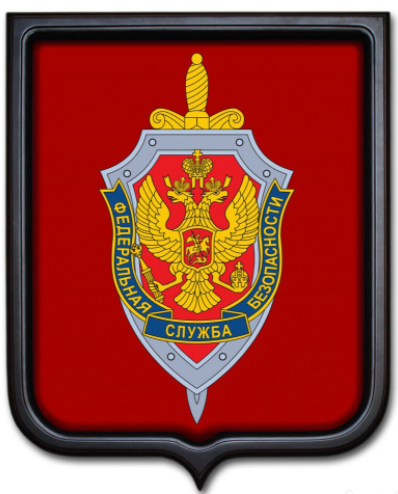 Герб ФСБ РФ выполнен в виде французского щита (прямоугольник с заострением в середине нижней части),и предназначен для размещения на стене. Для крепления на оборотной стороне герба предусмотрено крепление «крокодил».